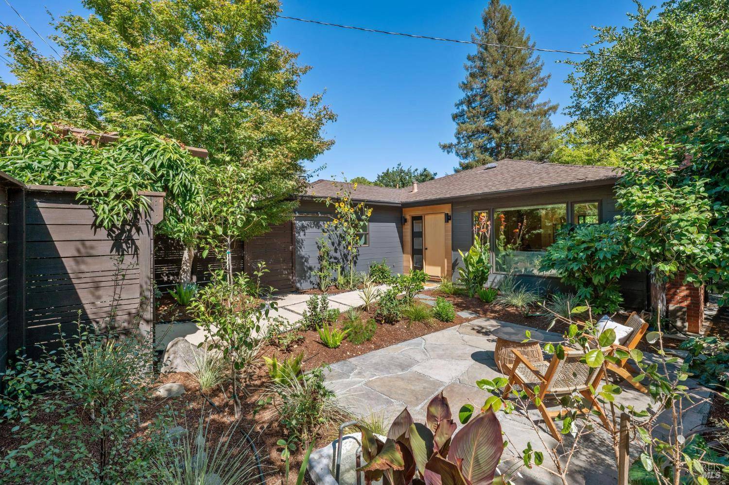 At the very center of it all, this custom home connects you effortlessly to the life of the town. Step outside and you're moments from Memorial Park, local trails, Draper Farms, restaurants, award winning schools, and every aspect of community life. With thoughtful, very intentional design choices at every turn, each space feels personal, inviting and dare we say - curated. The kitchen is the true heart of the home crafted with reclaimed acacia open display shelving, dimensional Heath tile and a generous island built for gathering. A custom reclaimed-wood TV cabinet, along with a mahogany door rescued from a 1940s Mediterranean church in southern Spain brings character to the open living area. And the relaxing primary suite boasts vaulted wood ceilings overhead and a spa-like bath with radiant floor heating, a steam shower and bidet. The outdoors are also oh so California. A covered deck with canvas walls, fans and a built in heater overhead extends the living space. Warm year round thanks to solar heat, the gorgeous pool was fully renovated in 2018. The extra bed/bath also provide space for an au pair or a private workspace. Approved architectural plans for a second-story addition simply add to the list. Words don't do this one justice. It absolutely must be experienced!