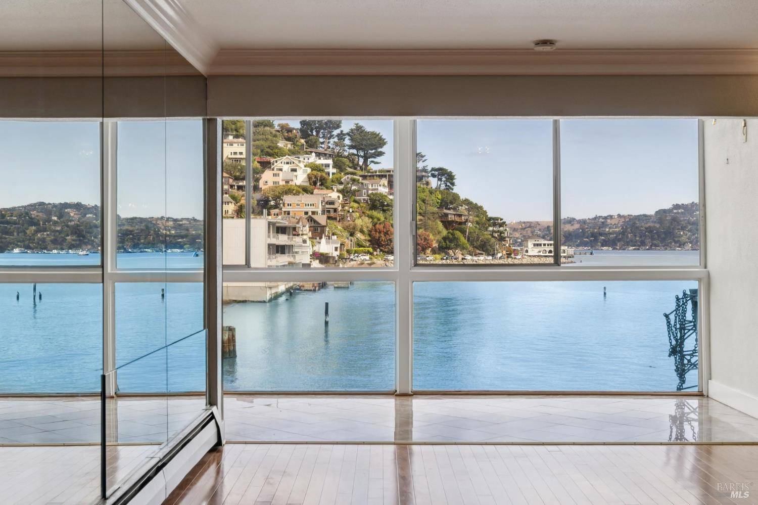Discover your dream of waterfront living at 100 South Street, #101, in scenic Cte d'Azure. This rarely available, end-unit condo offers breathtaking views of the Sausalito waterfront, Belvedere, Tiburon, and Angel Island from your own living room and primary bedroom. These spaces open onto an enclosed indoor sunroom, perfect for enjoying the stunning vistas in any season. They lead into the spacious living and dining areas, featuring elegant wood floors, custom-built-in cabinets, and a cozy wood-burning fireplace. The primary bedroom and living room both open onto an enclosed indoor porch, allowing you to enjoy spectacular bay views year-round. The kitchen is fully equipped for all your culinary needs. This home comes with an impressive suite of amenities that enhance the coastal lifestyle. You'll have access to an assigned covered parking space and guest parking, a community gym, and private storage. Enjoy serene beach access and take advantage of the community boat dock for kayaking, paddleboarding, or rowing. Convenience is key, with easy access to Highway 101, the Golden Gate Bridge, and nearby ferry and bus services. Delight in the proximity to fine dining, hiking trails, and downtown Sausalito, making this an ideal spot for both relaxation and commuting.