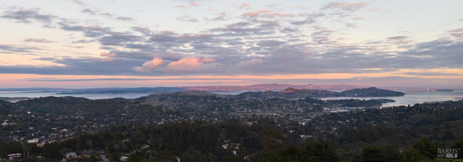 Embrace Mill Valley mountain living where wow is the first word visitors say. Perched at the top of the mountain, this reimagined mid-century home offers breathtaking 6-county views spanning Mt. Tam, Mill Valley, the Bay, three bridges, Mt. Diablo, and the city lights of San Francisco. Nearly every room features floor-to-ceiling windows framing ever-changing panoramas and endless natural light. Designed for easy entertaining and primarily single-level living, the open-concept layout connects the kitchen, dining area, great room, and family room, each with seamless indoor-outdoor flow to expansive redwood decks. The main level offers four bedrooms and three remodeled baths, including a secluded primary suite that opens to the view deck. Downstairs features a 350-bottle wine cellar and a flexible living room perfect for media, office, gym, or play. Outside, find a deer-fenced yard with level lawn, gardens, and room to play or grow. Enjoy city convenience and country serenity surrounded by trails, nature, and the close-knit Muir Woods Park community.