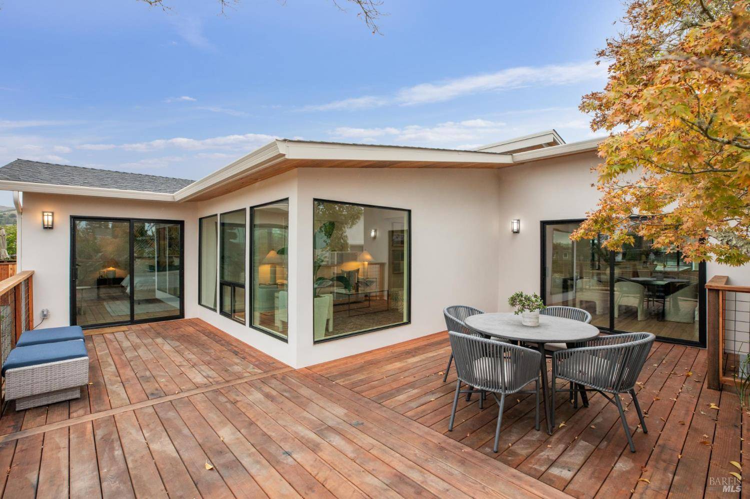 Welcome to 145 Yolo, a completely renovated, single-level 4-bedroom, 2.5-bath home in the coveted Mariner Cove neighborhood, beautifully positioned along the San Clemente Creek and Corte Madera marsh. An open, airy floor plan showcases natural white oak hardwood floors throughout and a stunning chef's kitchen featuring an 11' Taj Mahal quartz island with seating for five, top-of-the-line stainless steel appliances, and high-end custom cabinetry. The kitchen flows seamlessly into the dining area and out to the expansive deck through sliding glass doors - ideal for indoor/outdoor living. The light-filled living room offers tall ceilings and floor-to-ceiling windows overlooking the backyard, deck, and adjacent marsh. The redesigned backyard is an entertainer's dream, with multiple large decks, a spacious level lawn, and peaceful marsh and Mt Tam views. Private access to the water for kayaks and other water toys. Additional features include a fully insulated and finished two-car garage, a centrally located laundry area, new roof, new windows and doors, insulation throughout, new sewer line, new electrical, new plumbing, new foundation and the house was recently lifted, plus so much more!